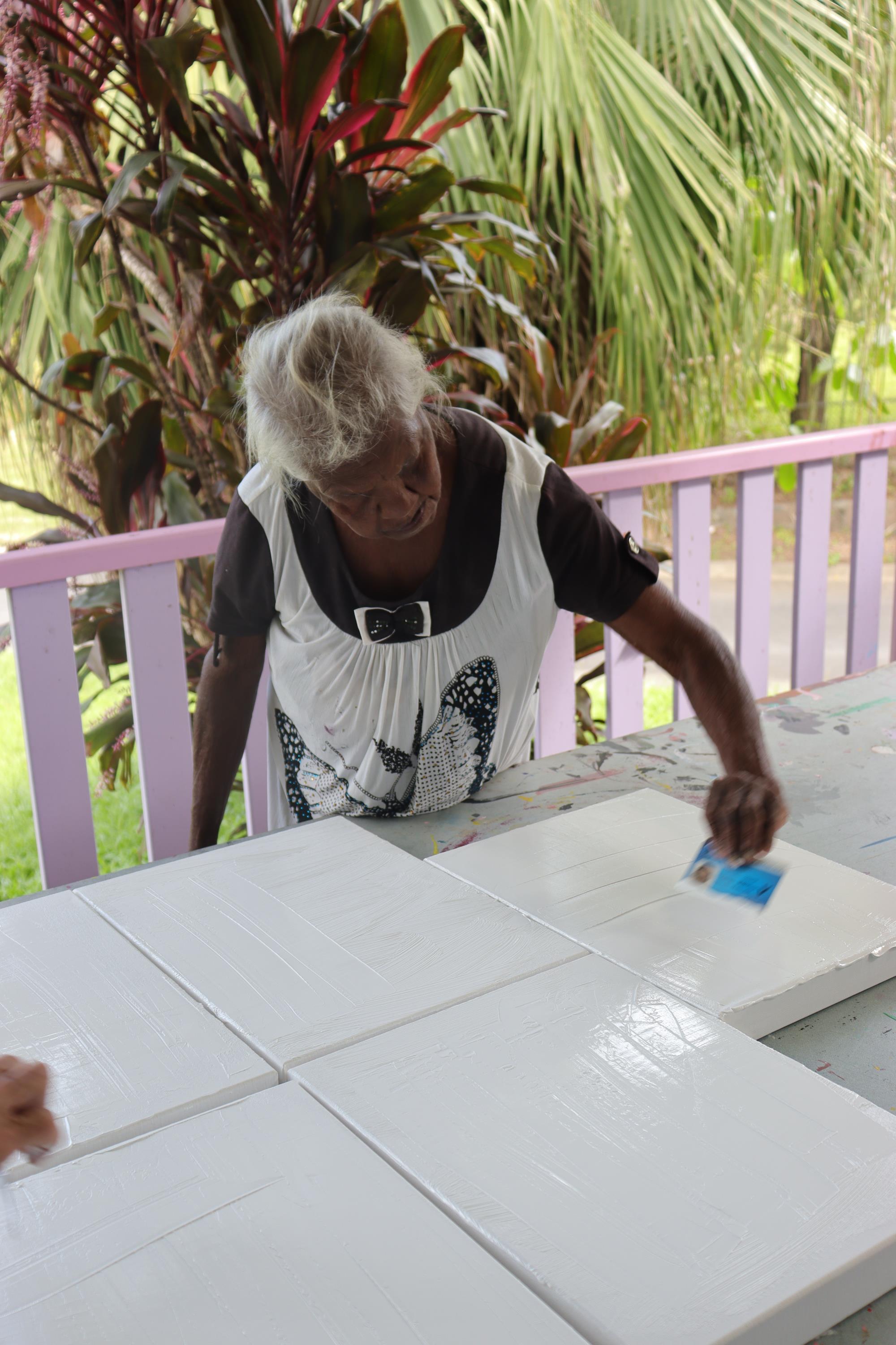 Art - Lilla Creek adding gesso to canvas